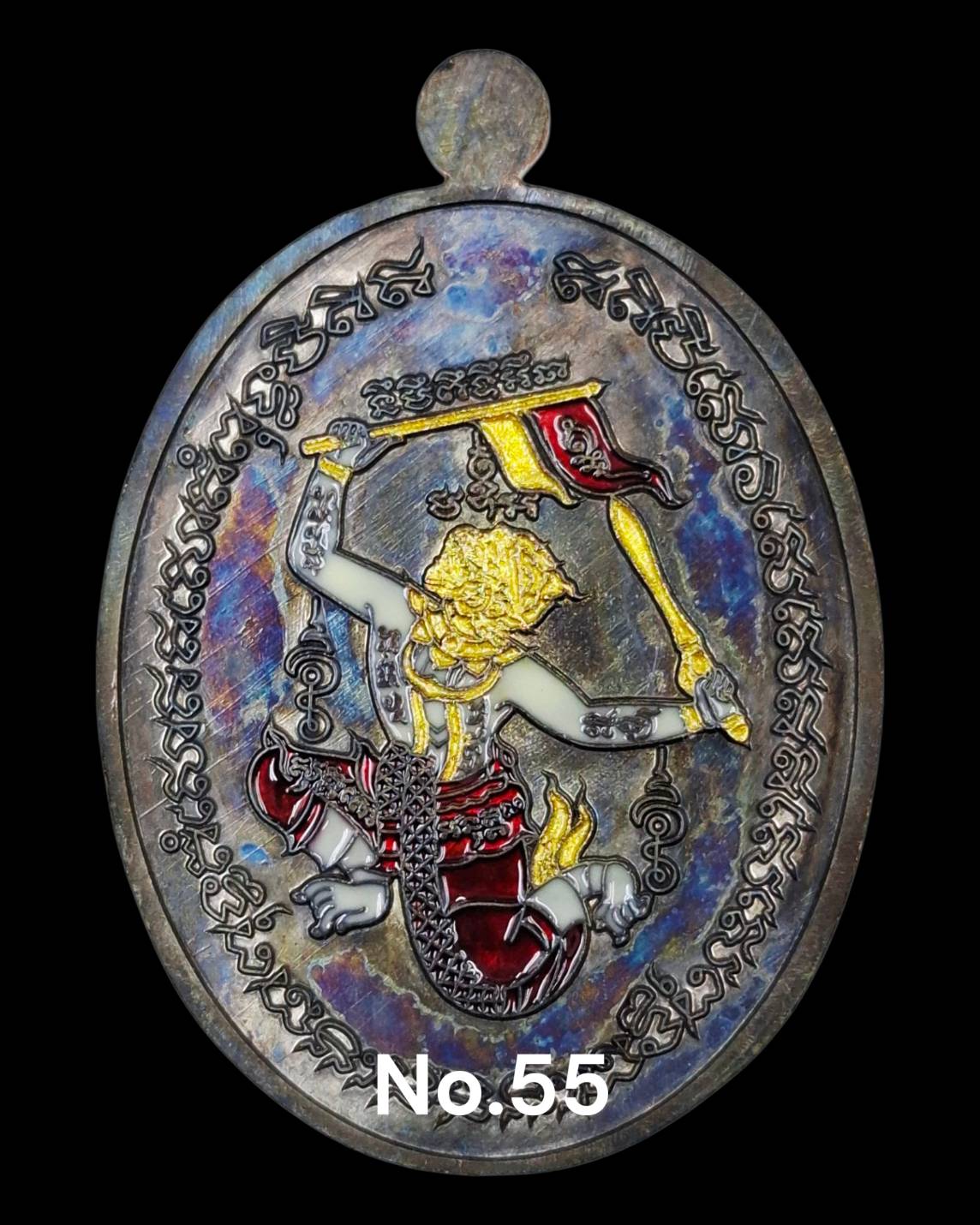 รุ่นชนะจน หลวงปู่ประเสริฐ สิริคุตโต MP นวะเพียว หน้ากากทองคำ หลังหนุมานลงยา สร้าง 55 เหรียญ เลข 55