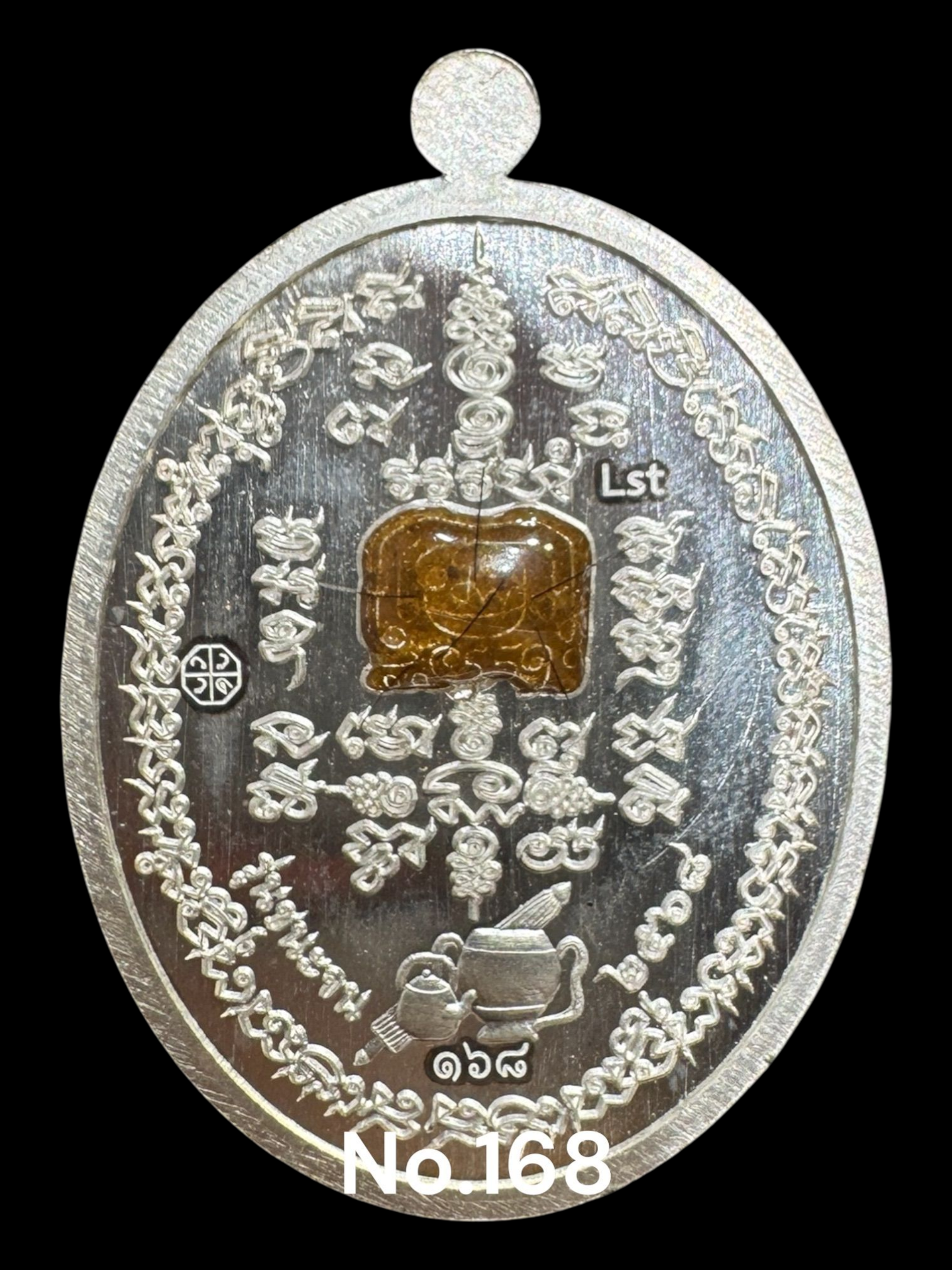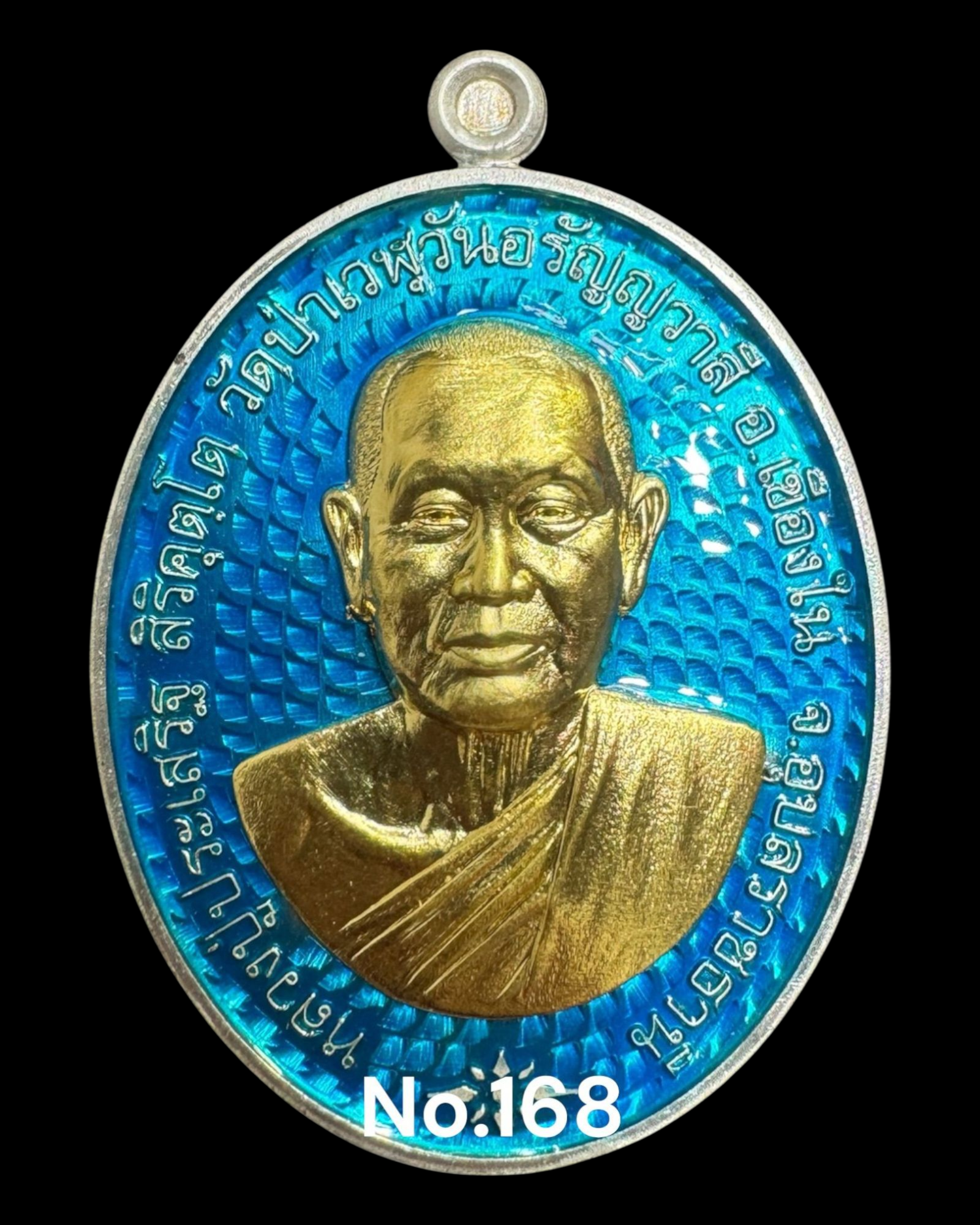 รุ่นชนะจน หลวงปู่ประเสริฐ สิริคุตโต LST(พิมพ์Aพิเศษ) เงินลงยาพื้นน้ำเงิน หน้ากากทองคำ เลข168 สร้าง 1 เหรียญ