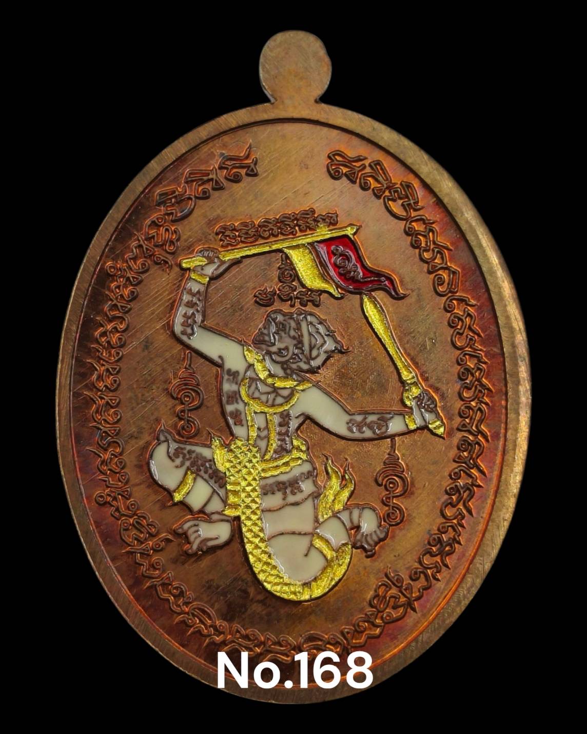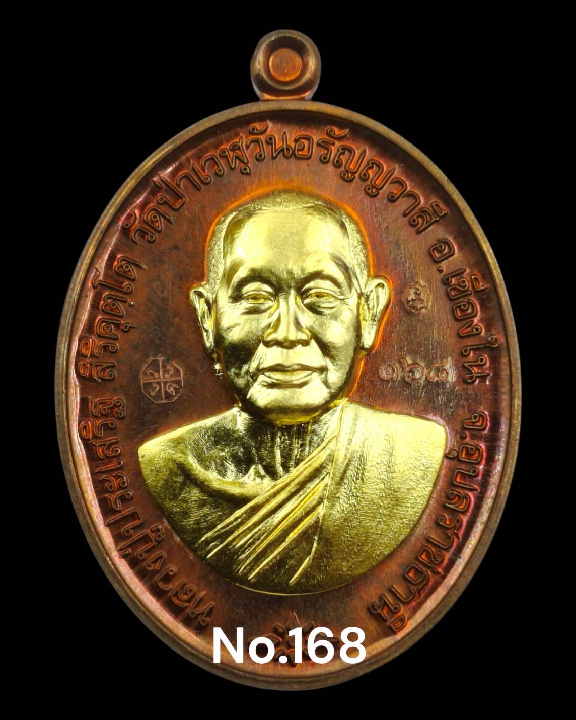 รุ่นชนะจน หลวงปู่ประเสริฐ สิริคุตโต : Lst. (พิมพ์ A พิเศษ) ทองแดงผิวไฟ หนาพิเศษ หน้ากากทองคำ หลังหนุมานลงยา สร้าง 1 เหรียญ ( เลข 168 )