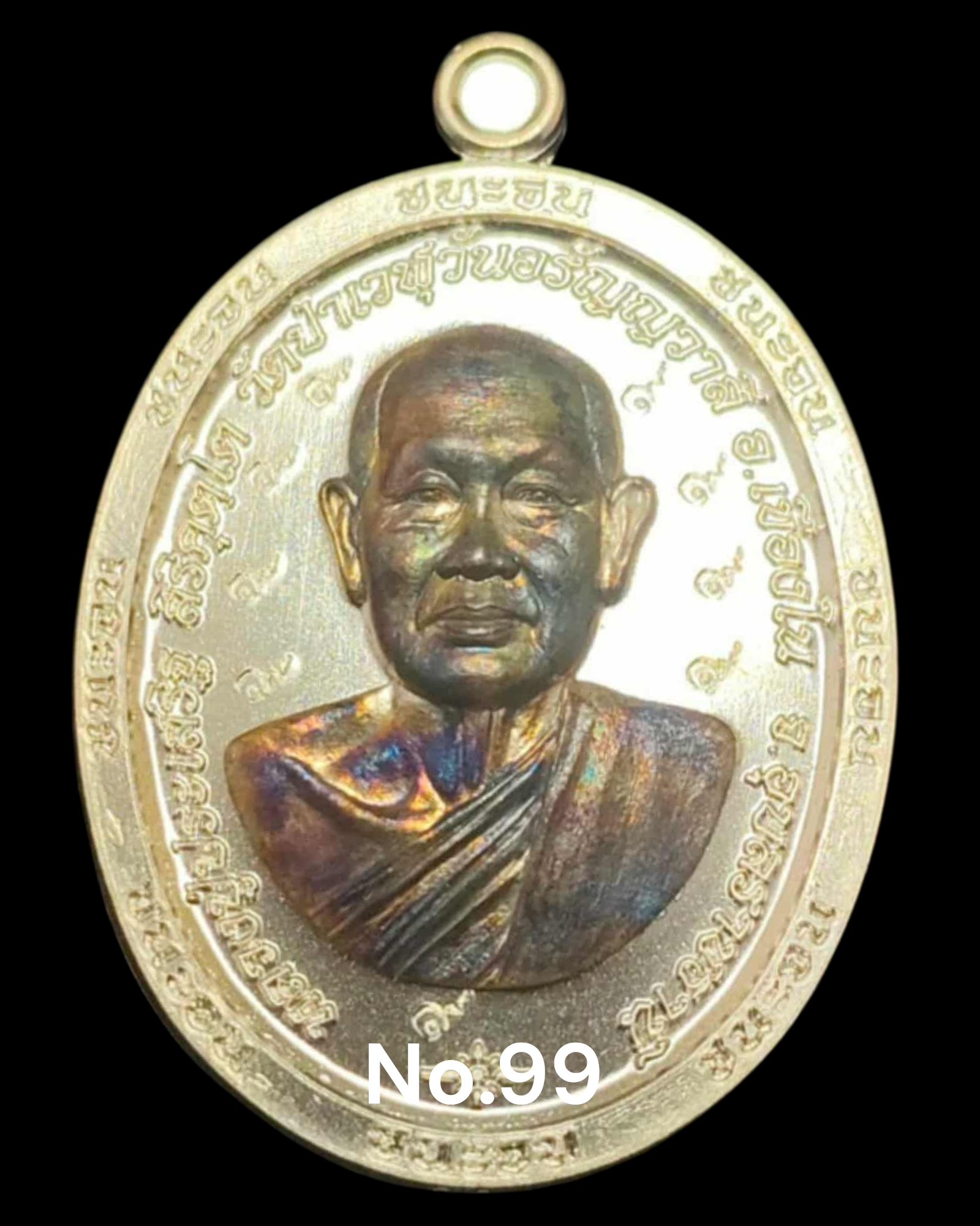 รุ่นชนะจน หลวงปู่ประเสริฐ สิริคุตโต : อัลปาก้าเพียว จีวรทาทอง (ลงท้ายด้วย1,5,9 ตอบ 9 รอบ หน้ากากนวะ สร้าง 278 เหรียญ เลข.99