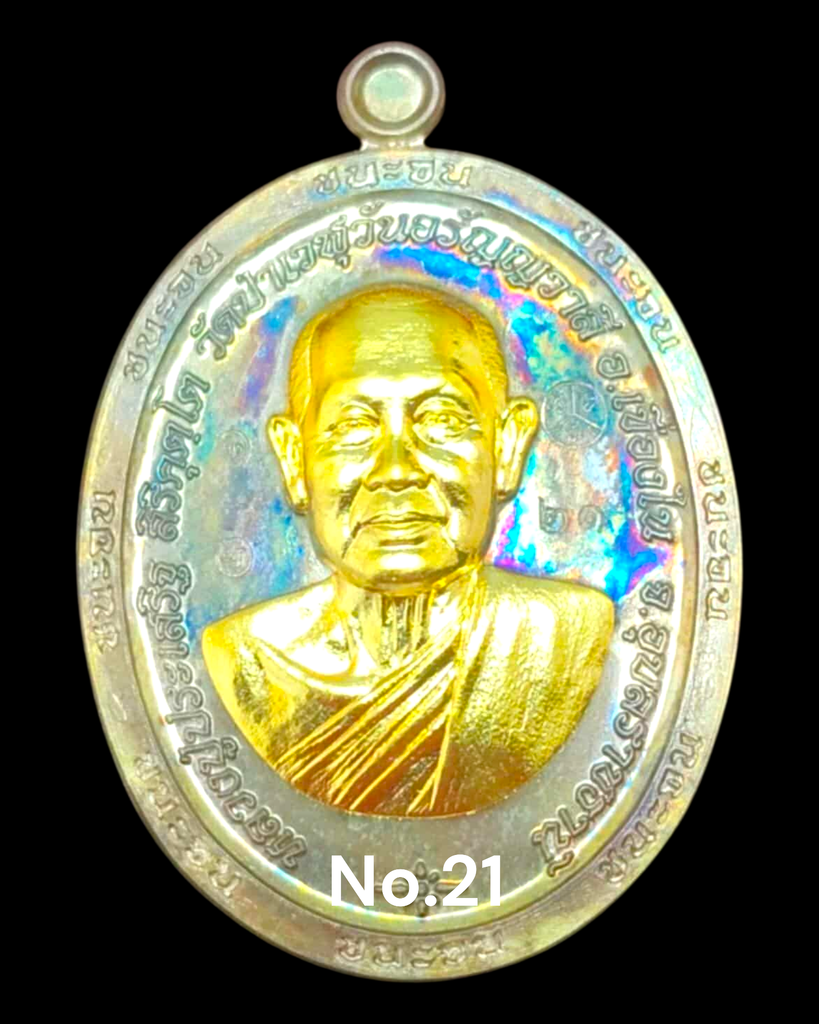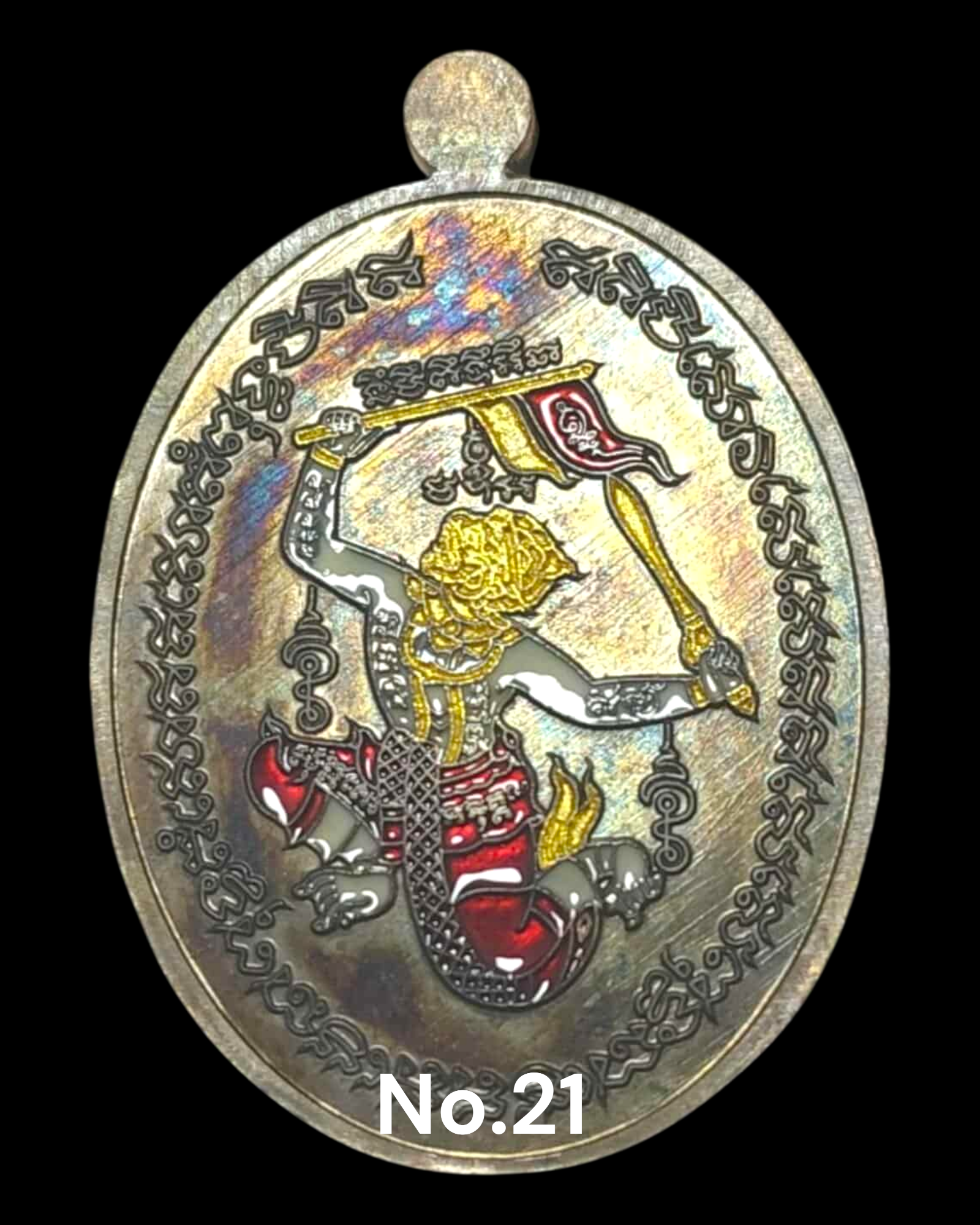 รุ่นชนะจน หลวงปู่ประเสริฐ สิริคุตโต : MP นวะเพียว หน้ากากทองคำ หลังหนุมาน ลงยา สร้าง 55 เหรียญ เลข.21