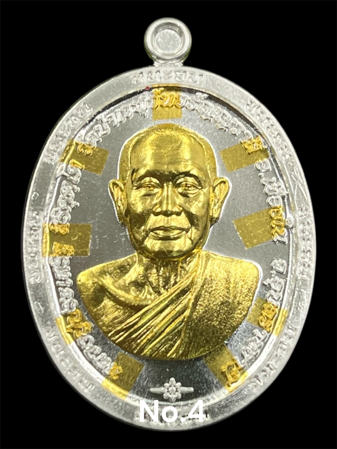 รุ่นชนะจน หลวงปู่ประเสริฐ สิริคุตโต : เงินหน้ากากทองคำ ตะกรุดทองคำ 9 ดอก หลังหนุมาน(Top Secret) สร้าง 9 เหรียญ เลข 4