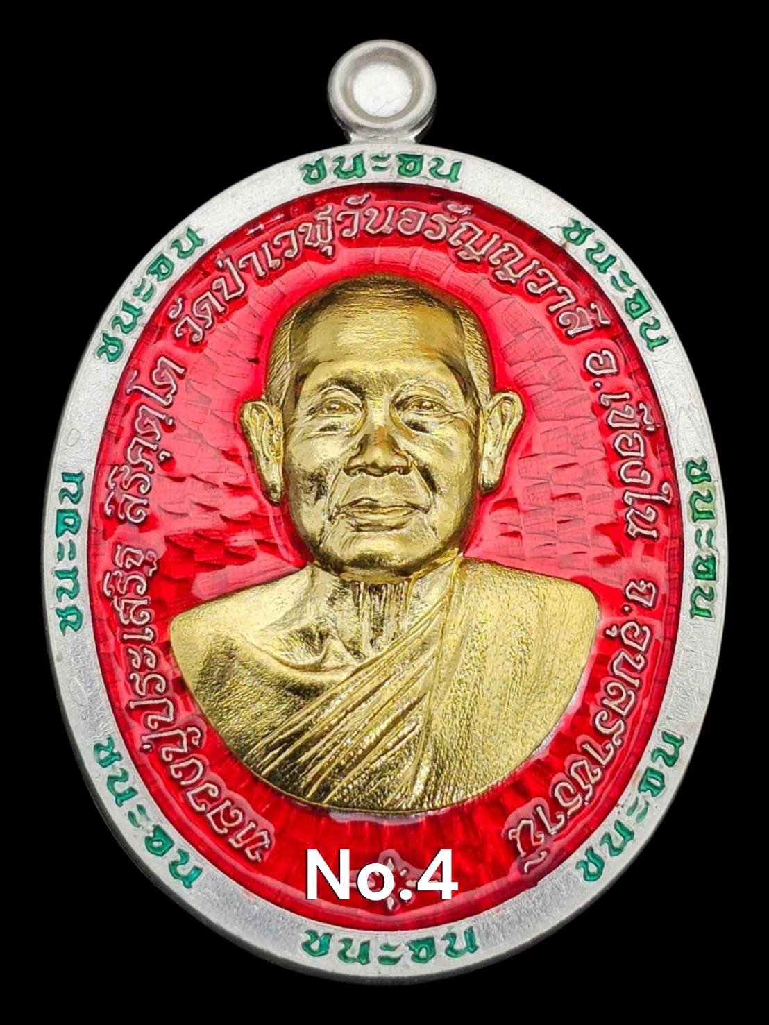 รุ่นชนะจน หลวงปู่ประเสริฐ สิริคุตโต : เงินลงยาแดงขอบยาเขียว พื้นแดง หน้ากากทองคำ สร้าง 69 เหรียญ No.4