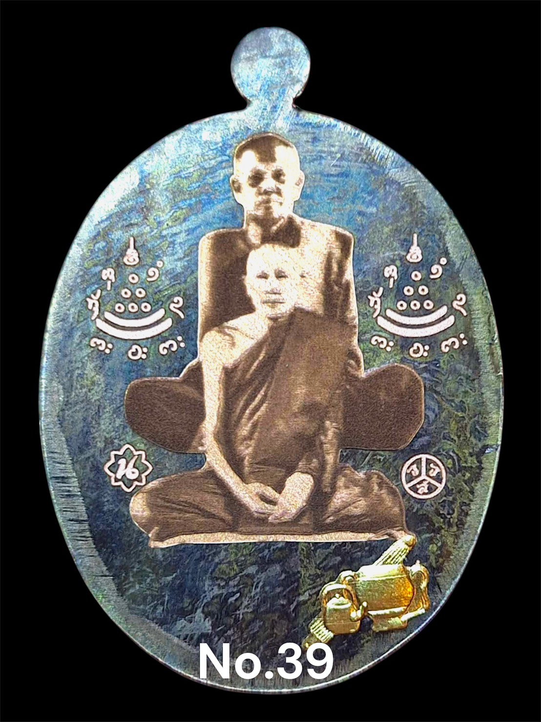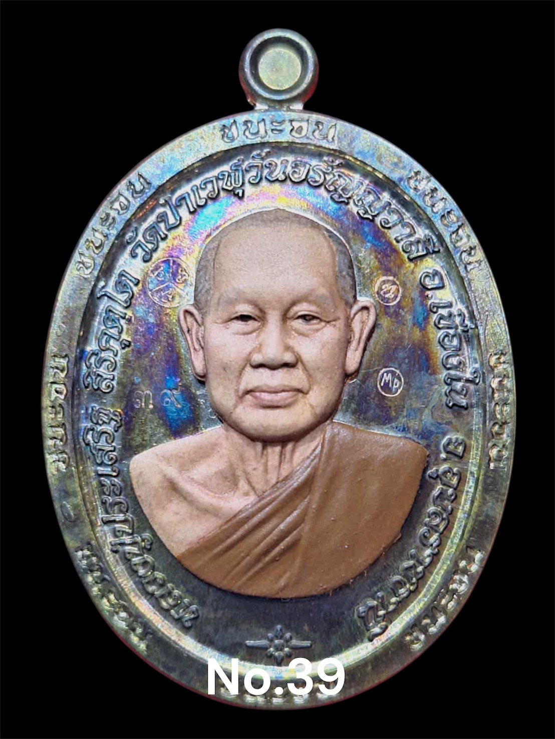 รุ่นชนะจน หลวงปู่ประเสริฐ สิริคุตโต : MP นวะเพียวหน้ากากเพ้นท์ (หลังเรียบปู่หลาน) (บาตรทองคำ) สร้าง 55 เหรียญ เลข 39