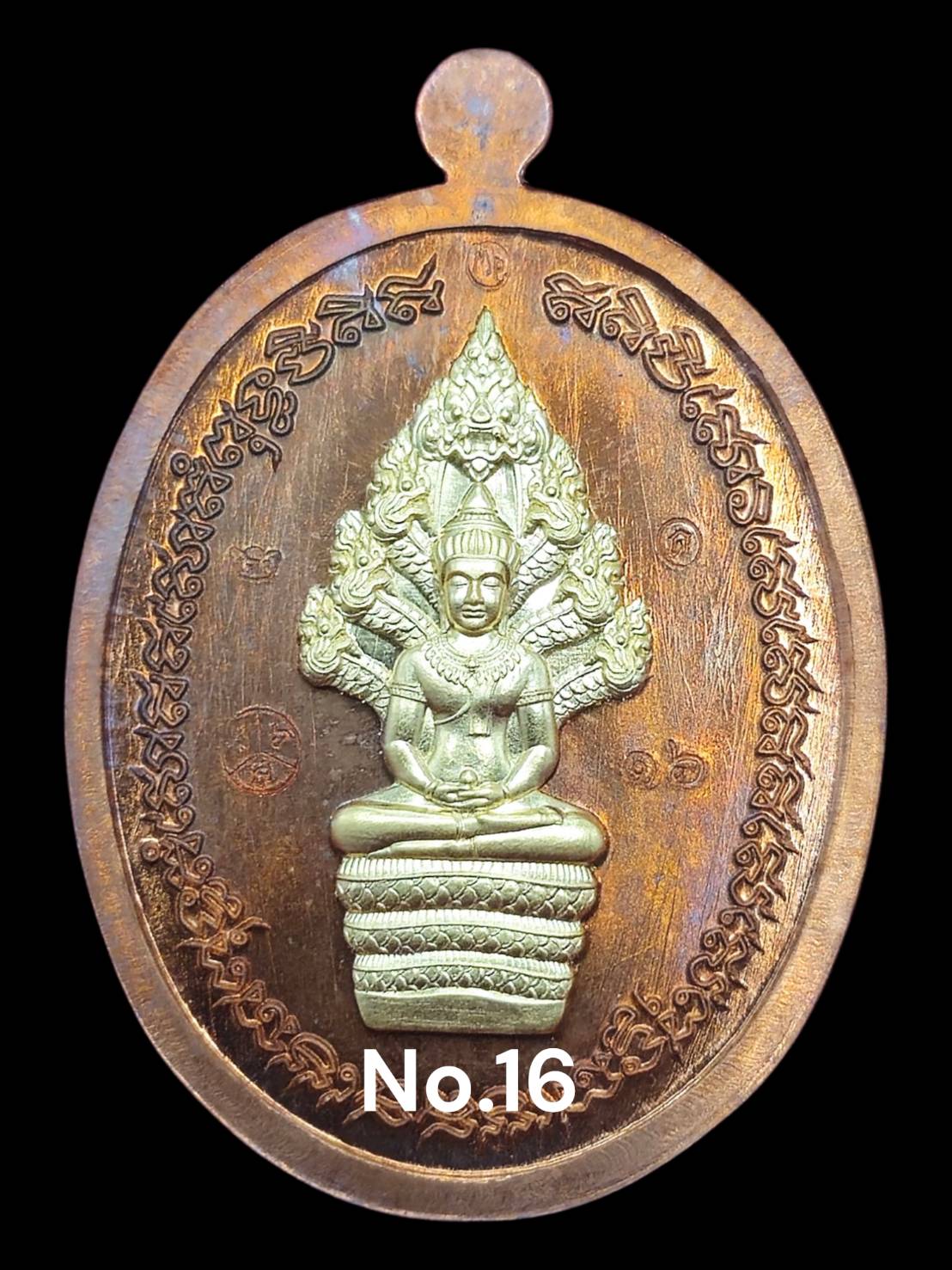 รุ่นชนะจน หลวงปู่ประเสริฐ สิริคุตโต : MP ทองแดงชนวนปู่ผาง หน้ากากทองคำ หลังนาคปรกทองคำ สร้าง 29 เหรียญ (เลข 16)