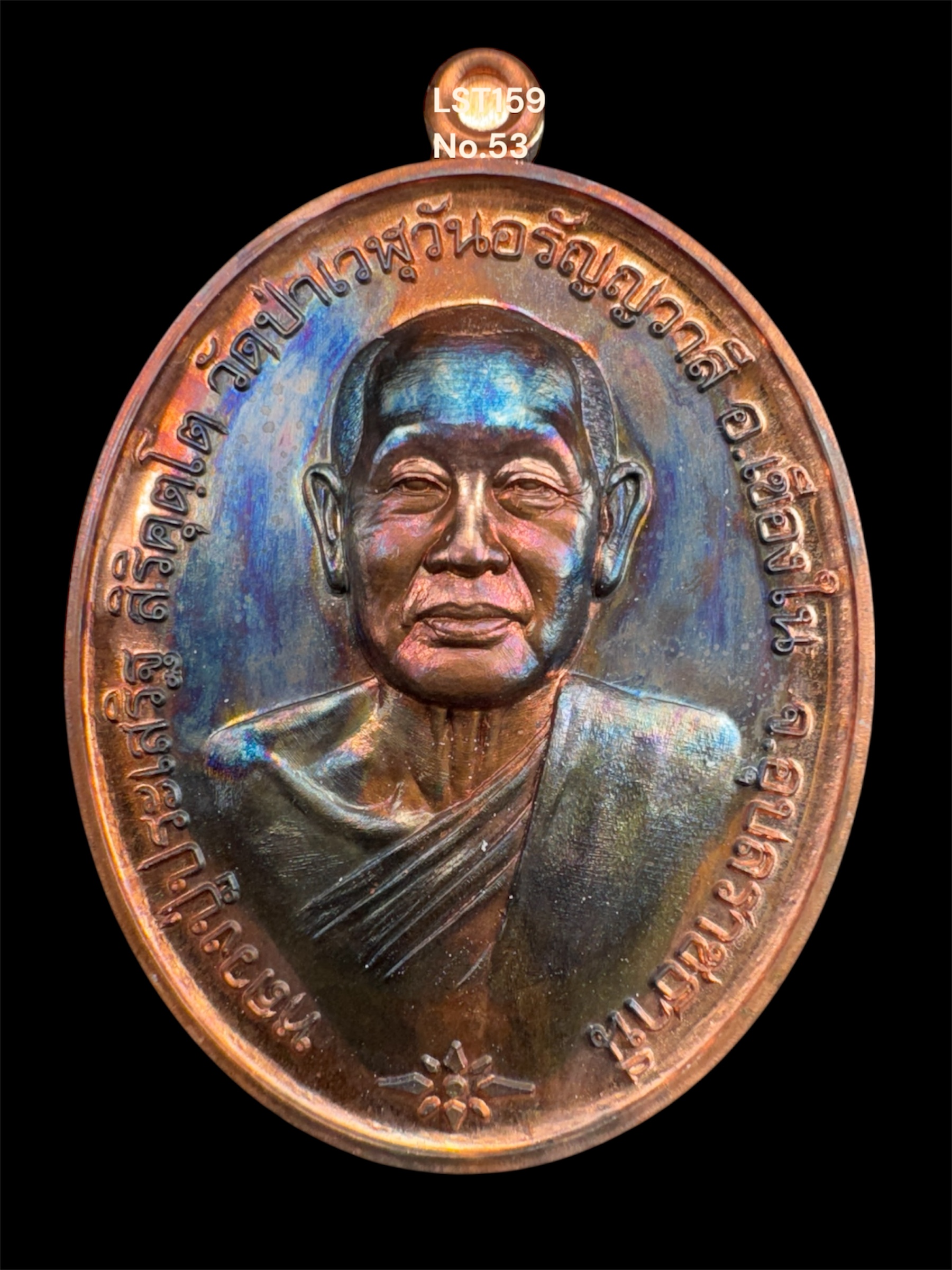 รุ่นชนะจน หลวงปู่ประเสริฐ สิริคุตโต *เนื้อทองแดงผิวไฟเดิม อุดผงทรายทอง/เกศา No.53