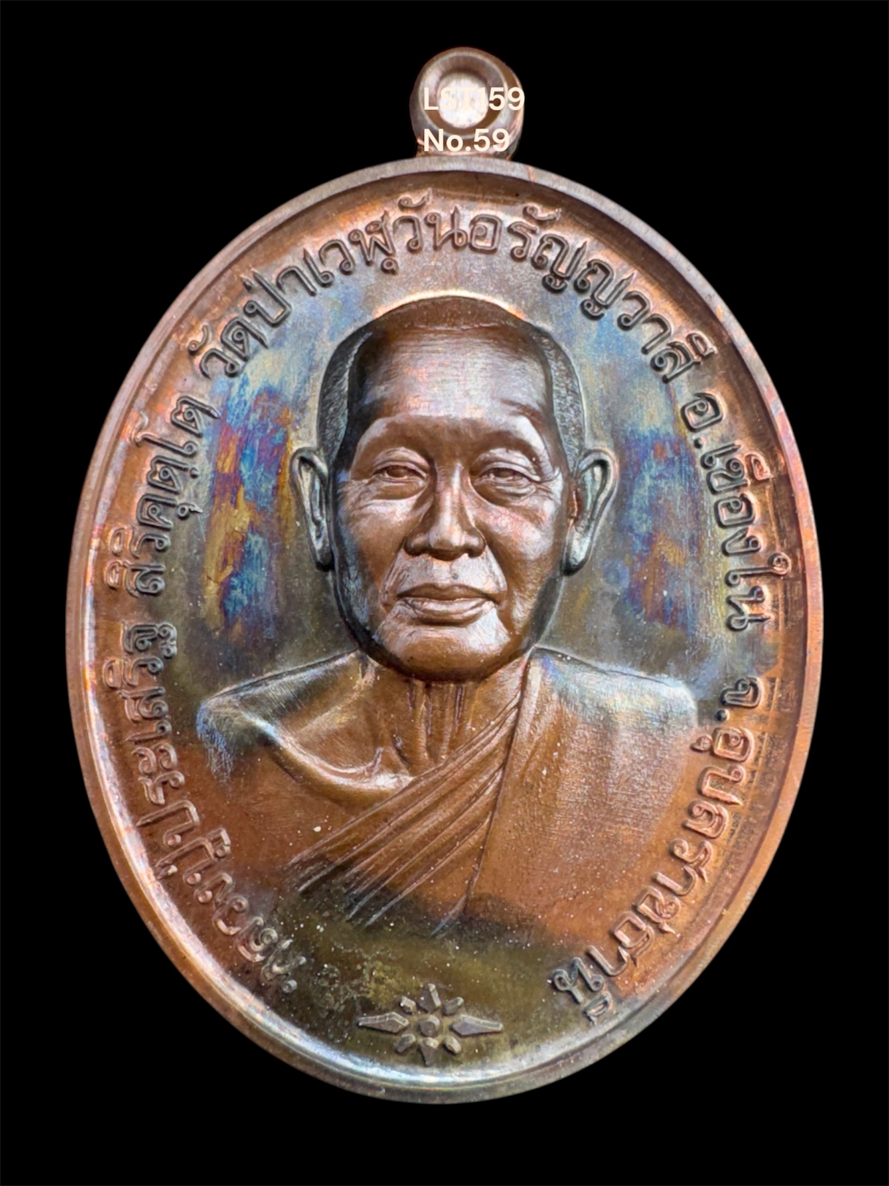 รุ่นชนะจน หลวงปู่ประเสริฐ สิริคุตโต *เนื้อทองแดงผิวไฟเดิม อุดผงทรายทอง/เกศา No.59