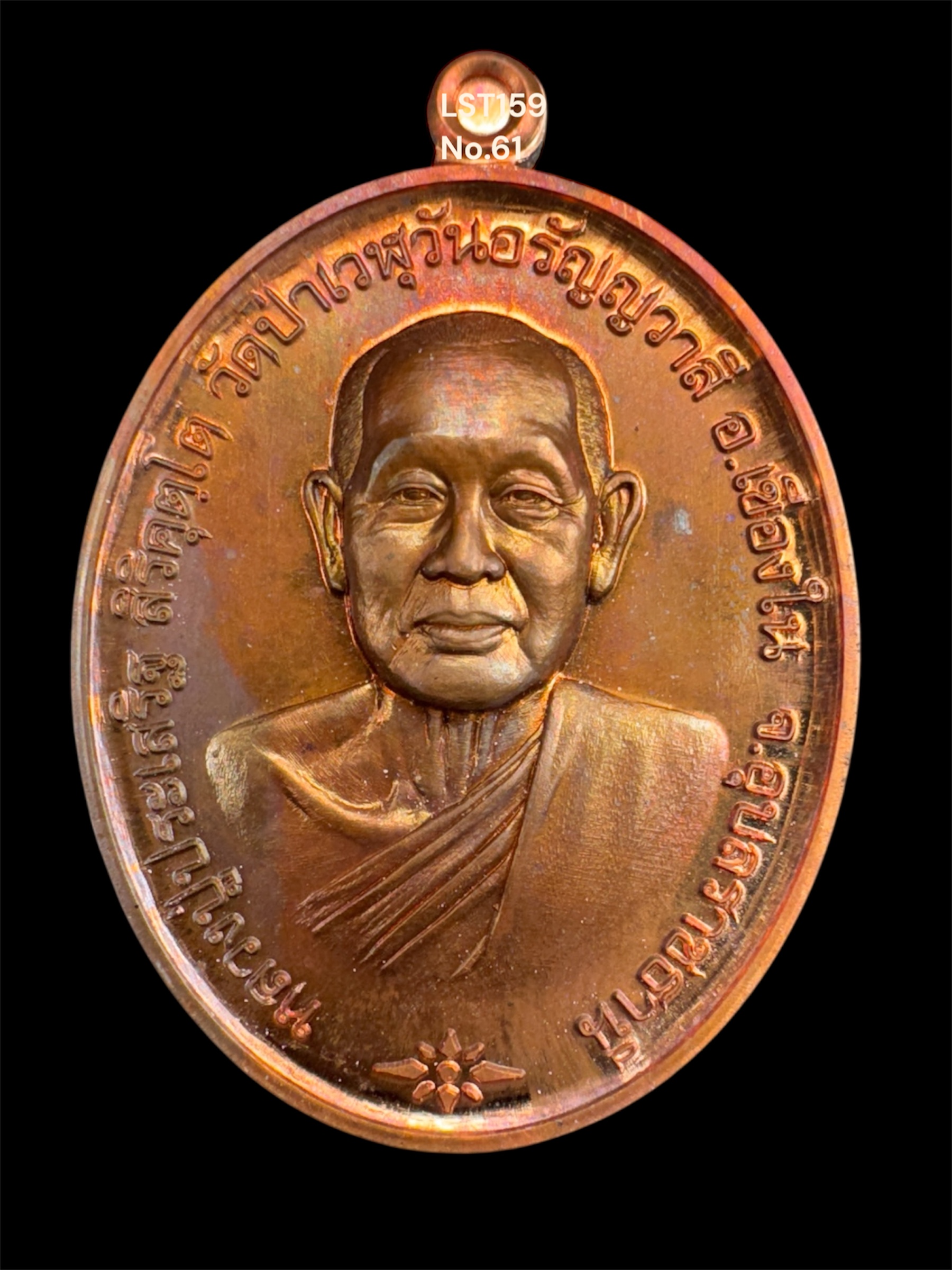 รุ่นชนะจน หลวงปู่ประเสริฐ สิริคุตโต *เนื้อทองแดงผิวไฟเดิม อุดผงทรายทอง/เกศา No.61