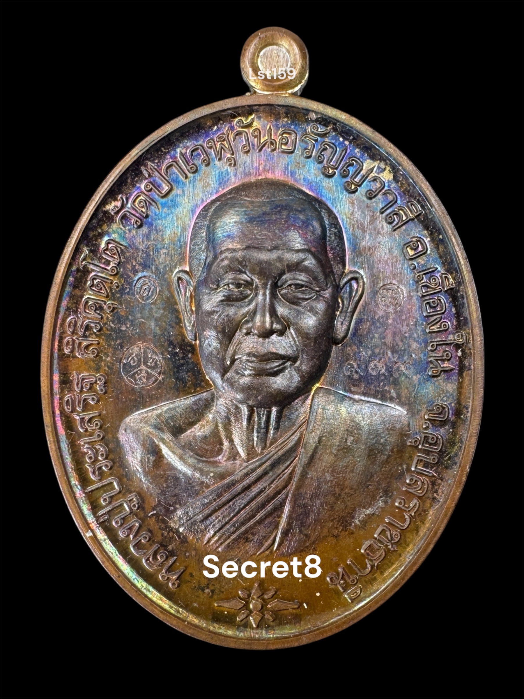 รุ่นชนะจน หลวงปู่ประเสริฐ สิริคุตโต * เงินลงยาแกแล็คซี่ หน้า-หลัง หน้ากากทองคำ สร้าง 19 เหรียญ เลข 14