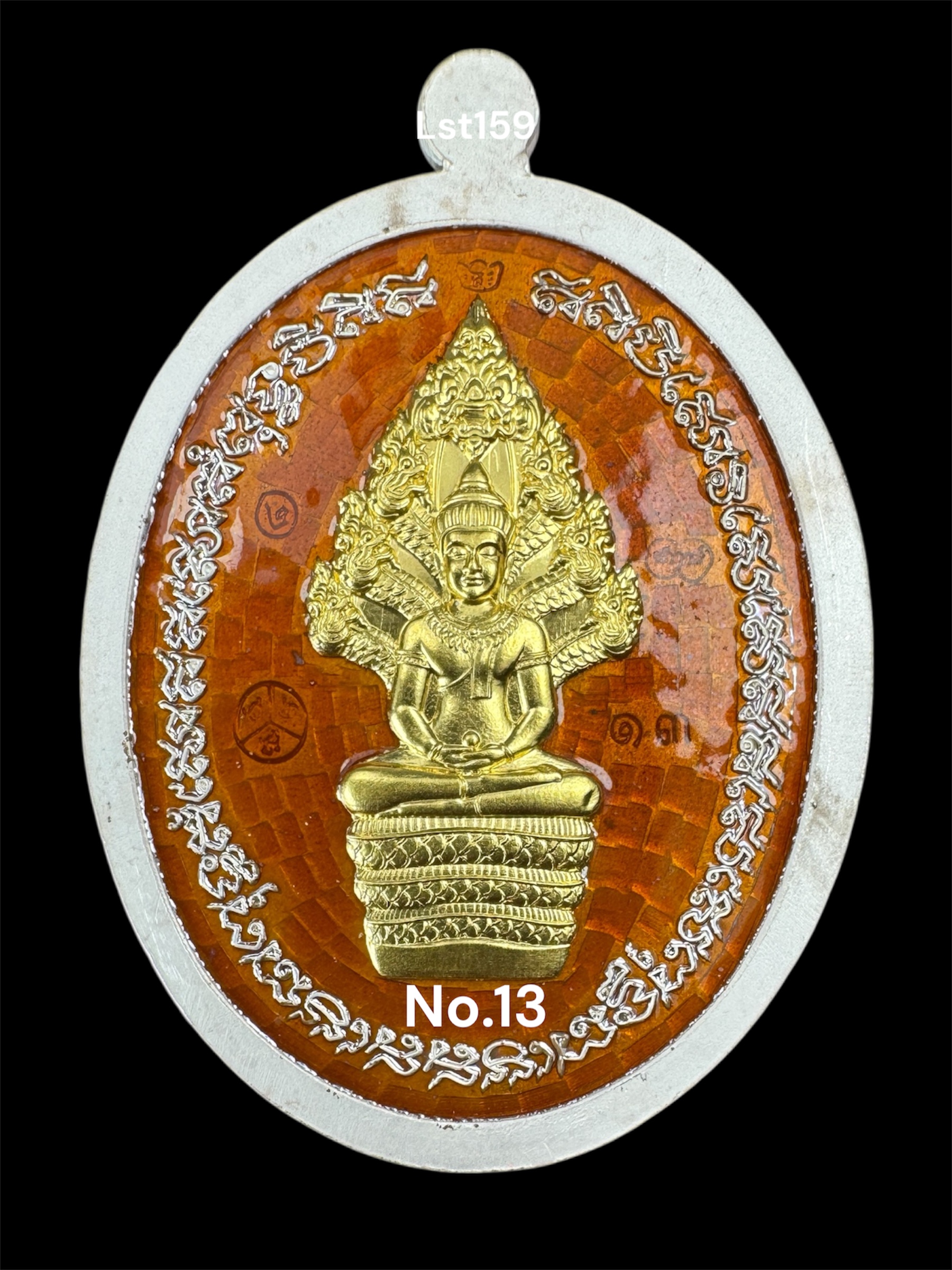 รุ่นชนะจน หลวงปู่ประเสริฐ สิริคุตโต *นำฤกษ์ เนื้อเงินลงยาร้อนแดง หน้า-หลัง หน้ากากทองคำ หลังนาคปรกทองคำ สร้าง19 เหรียญ No.13