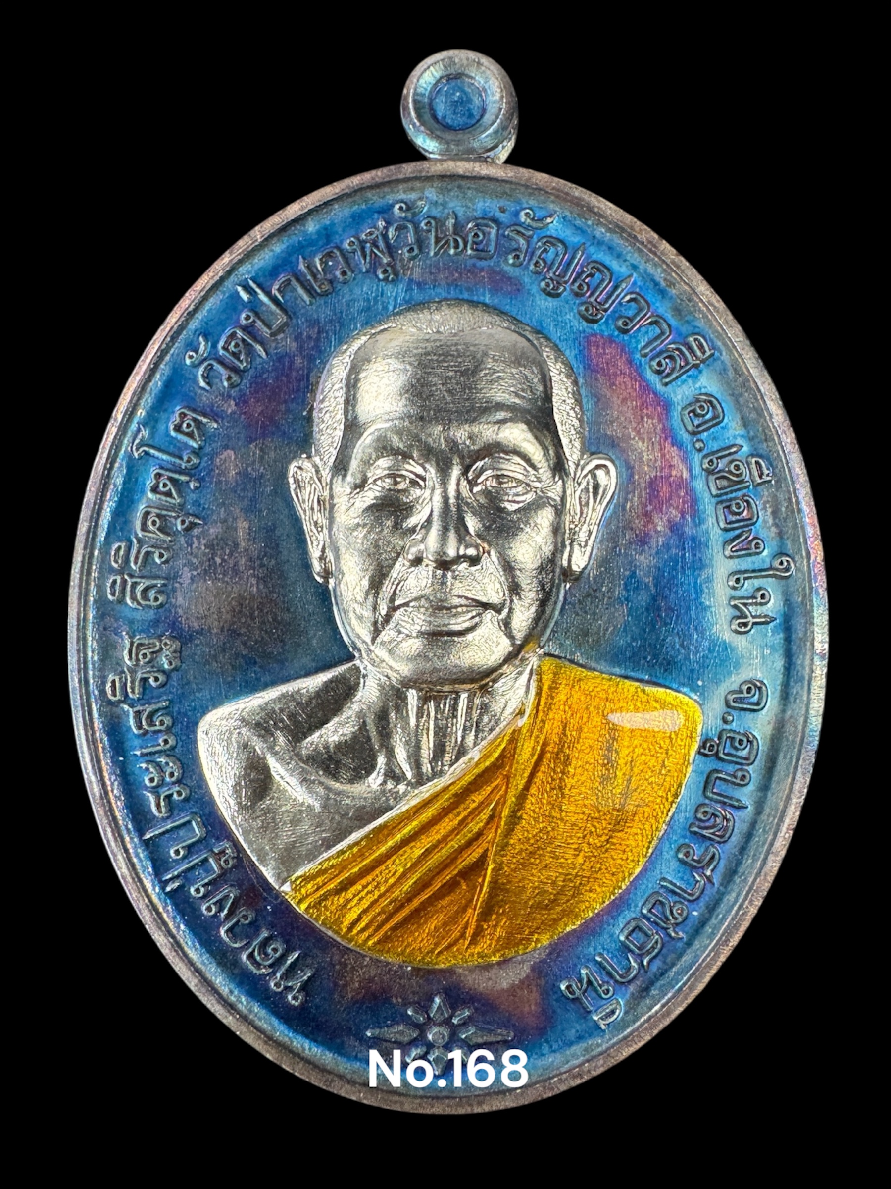 รุ่นชนะจน หลวงปู่ประเสริฐ สิริคุตโต * นำฤกษ์ ทองไหลแมลงทับ หน้ากากอัลปาก้าลงยา ลง9หน้ากากเงิน หลังนาคปรกเงิน สร้าง 198 เหรียญ No.168