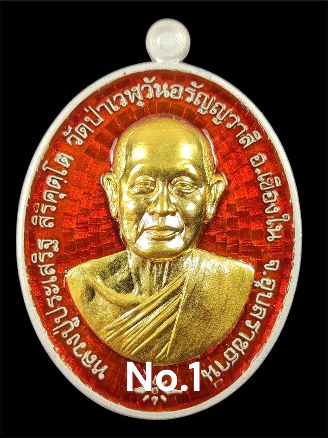 รุ่นชนะจน หลวงปู่ประเสริฐ สิริคุตโต *นำฤกษ์เงินลงยาร้อนแดง หน้า-หลัง หน้ากากทองคำ สร้าง 31 เหรียญ (เลข1)