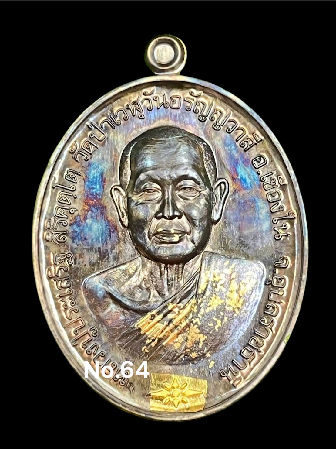 รุ่นชนะจน หลวงปู่ประเสริฐ สิริคุตโต * นำฤกษ์ นวะเพียวพญา โรยผงตะไบทองไหลจีวร ฝังตะกุดทองคำ สร้าง100เหรียญ(เลข64)