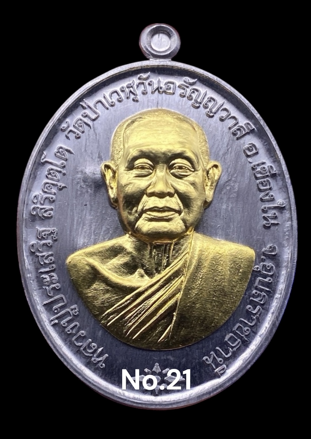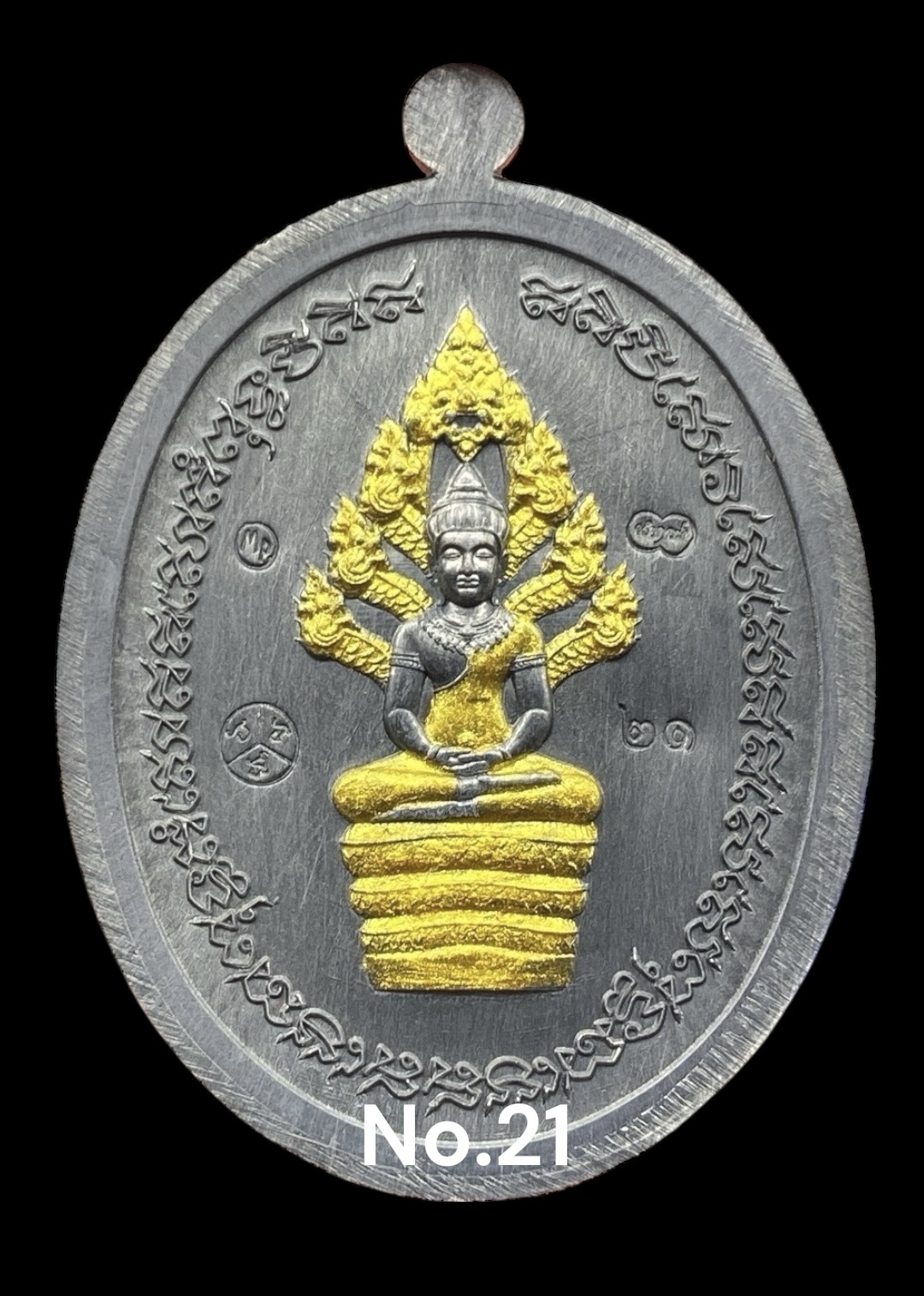 รุ่นชนะจน หลวงปู่ประเสริฐ สิริคุตโต * MP6.ตะกั่ว หน้าทองคำ หลังนาคปรกทาทอง เลข 21 (สร้าง 31 เหรียญ)