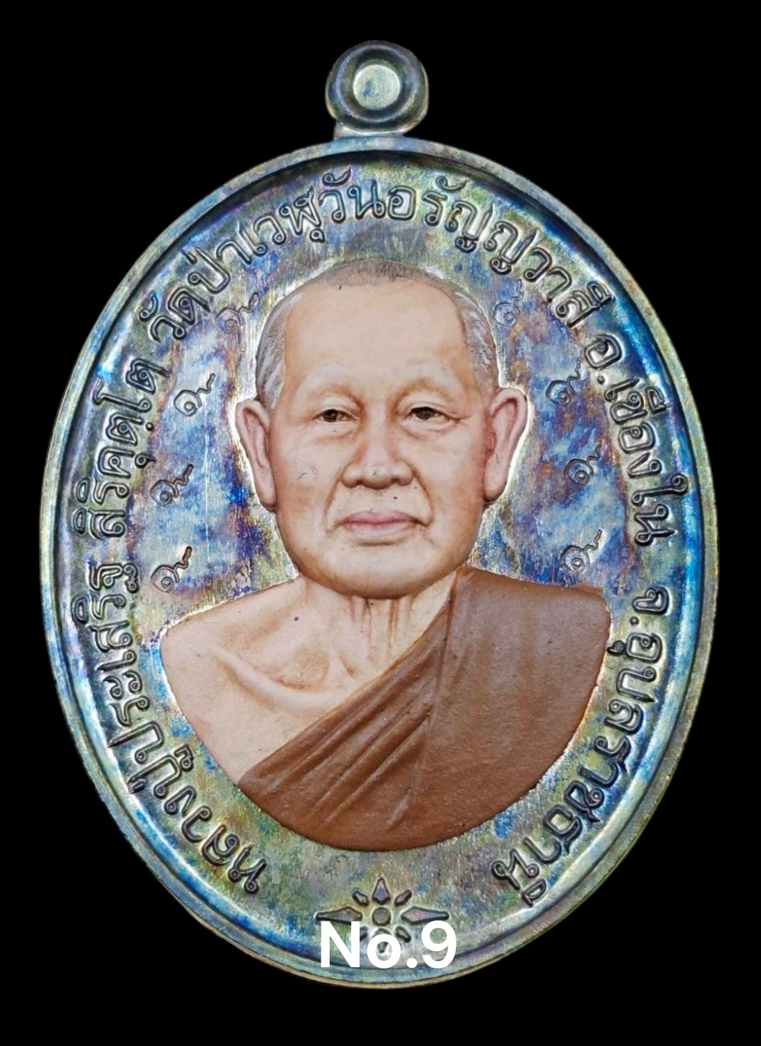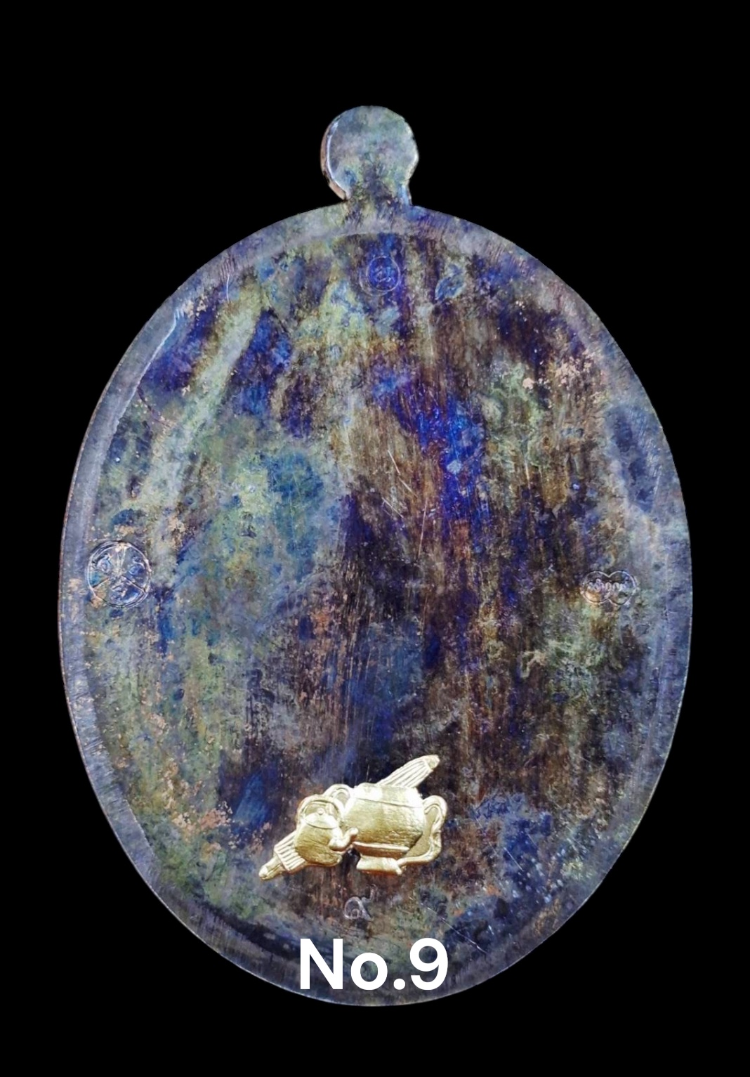 รุ่นชนะจน หลวงปู่ประเสริฐ สิริคุตโต * T4.นวเพียว ๙ รอบ หน้ากากเพ้นท์ หลังเรียบ บาตรทองคำสร้าง 55 เหรียญ เลข 9