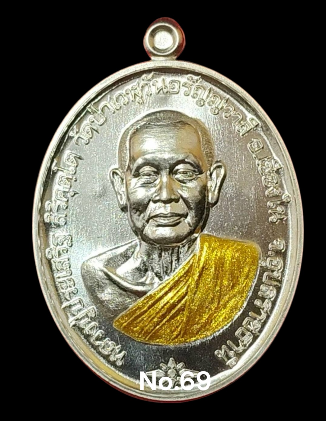 รุ่นชนะจน หลวงปู่ประเสริฐ สิริคุตโต * เนื้อเงินเพียวเพียว (ลง9 จีวรทาทองคำ หลังนาคปรก ลงพิเศษ ) สร้าง 99 เหรียญ เลข.69 เ