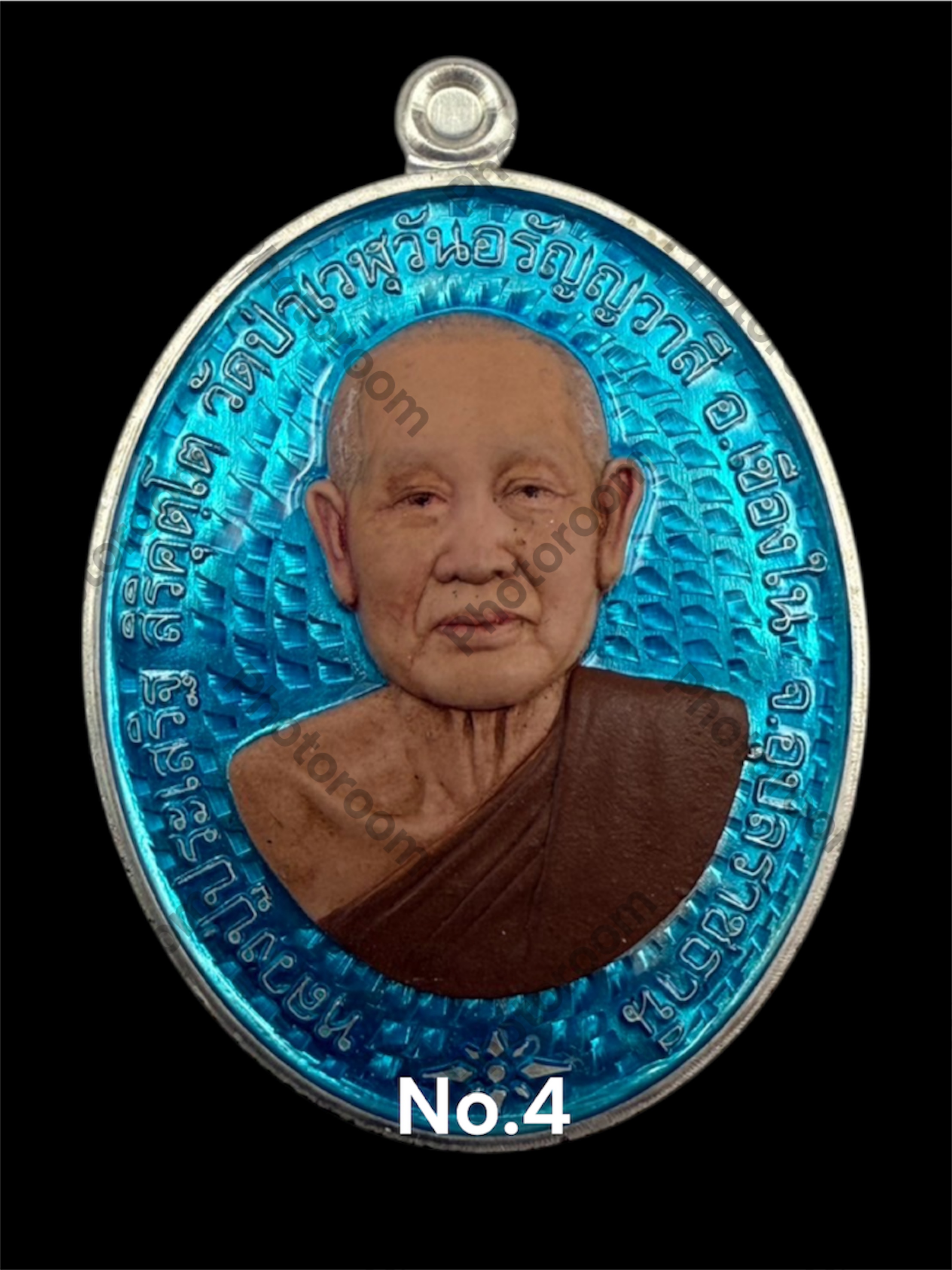 รุ่นชนะจน หลวงปู่ประเสริฐ สิริคุตโต * นำฤกษ์ เงินลงยาฟ้า หน้า-หลัง หน้ากากเพ้นท์ สร้าง 9 เหรียญ (เลข4)