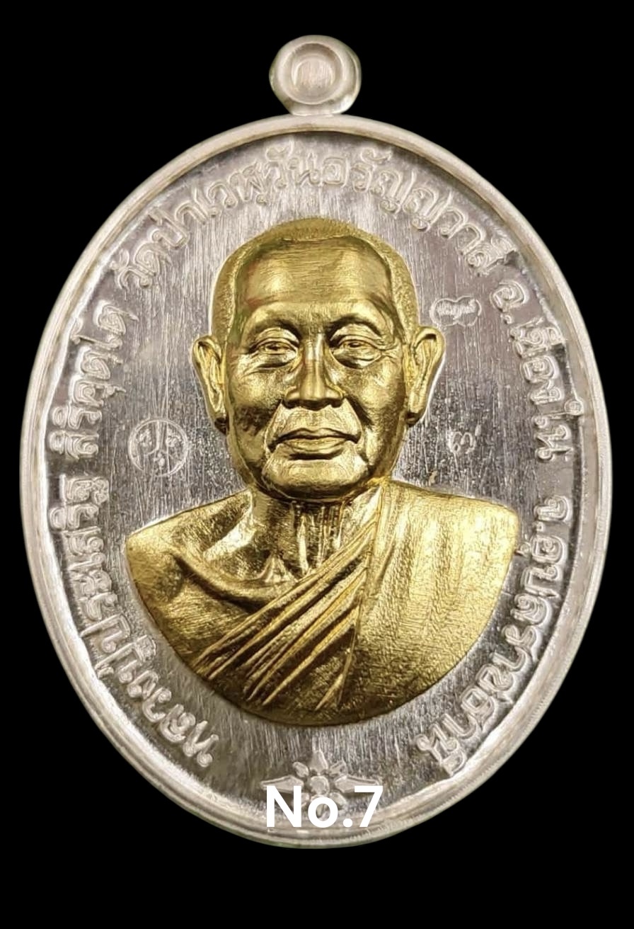 รุ่นชนะจน หลวงปู่ประเสริฐ สิริคุตโต * MP1 เนื้อเงินหน้ากากทองคำหลังนาคทองคำสร้าง 9 เหรียญ เลข 7