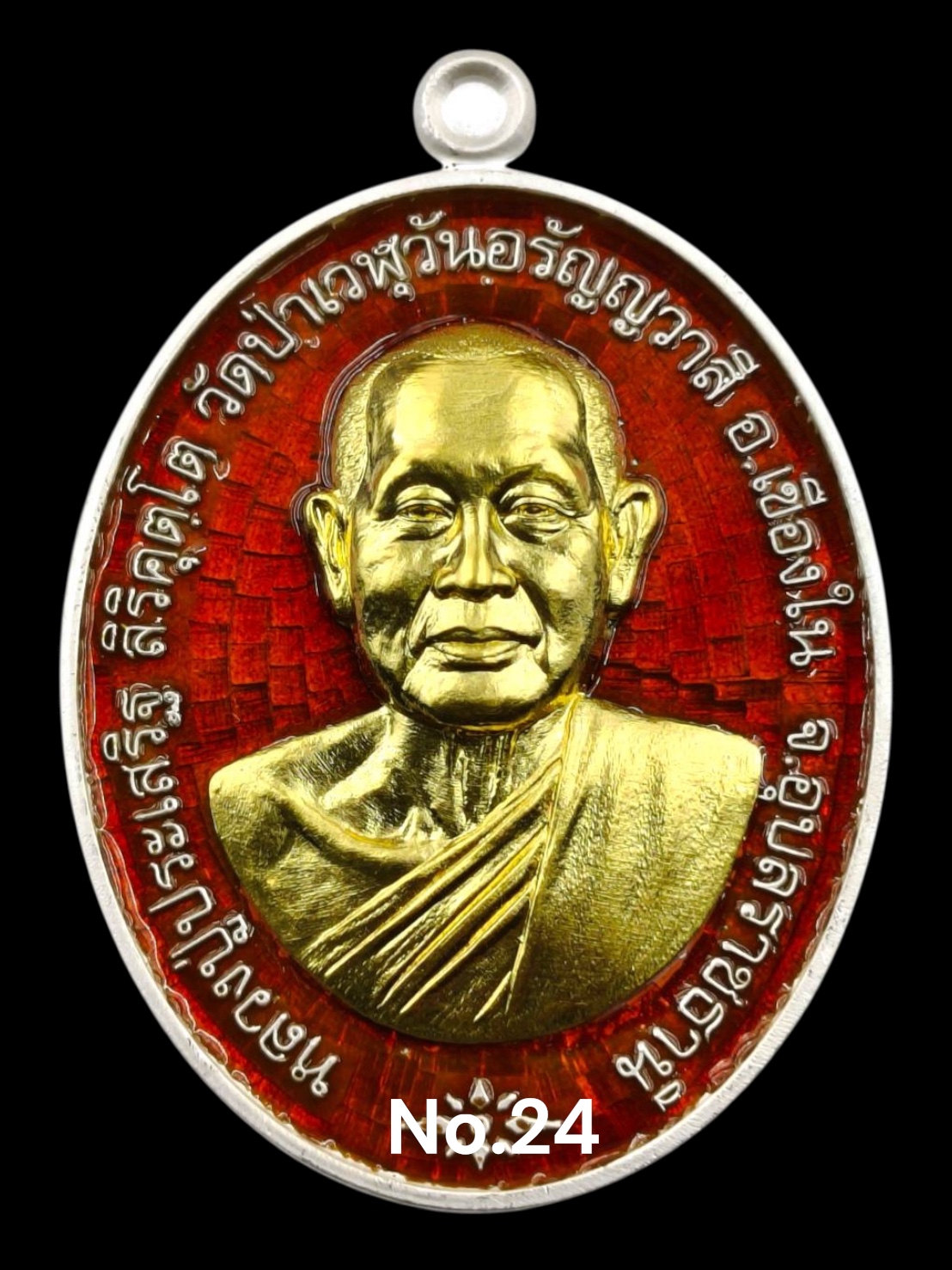 รุ่นชนะจน หลวงปู่ประเสริฐ สิริคุตโต * นำฤกษ์เงินลงยาร้อนแดง หน้า-หลัง หน้ากากทองคำ (หลังบาตรทองคำ) สร้าง 31 เหรียญ ( เลข 24 )