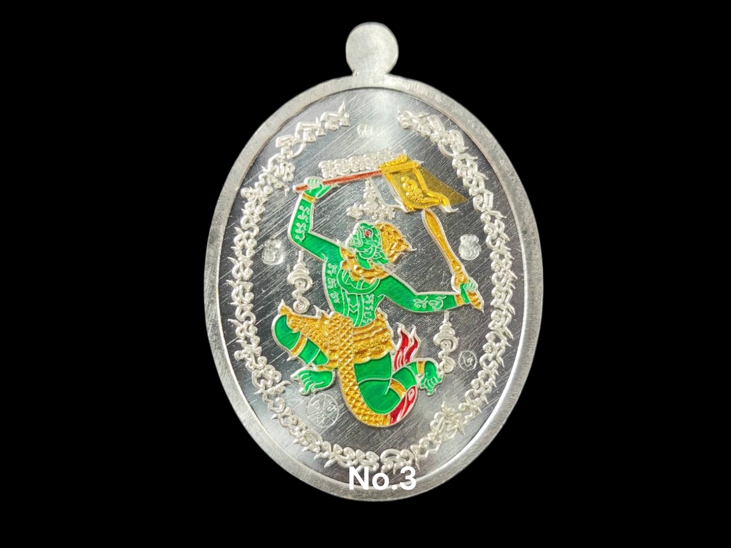 รุ่นชนะจน หลวงปู่ประเสริฐ สิริคุตโต * A2 เนื้อเงินหน้ากากทองคำเต็มแผ่น หลังหนุมานกายเขียว ธงทองคำ สร้าง 9 เหรียญ เลข3