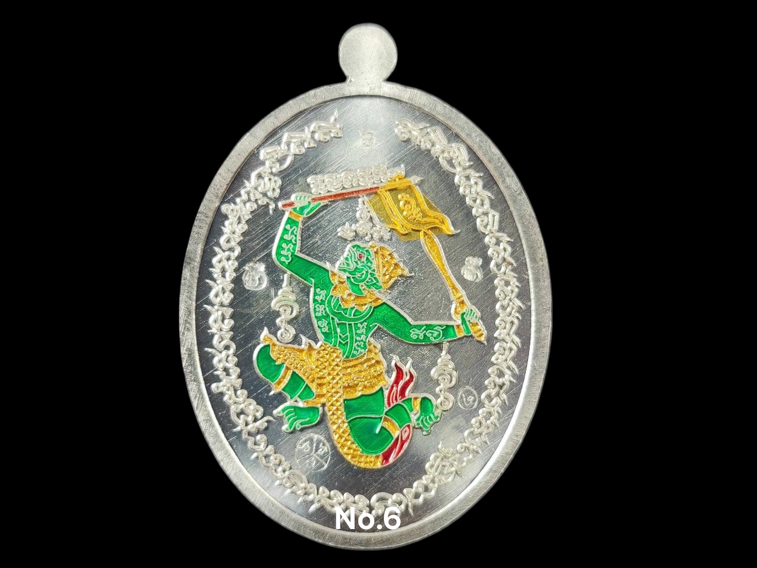 รุ่นชนะจน หลวงปู่ประเสริฐ สิริคุตโต * A2 เนื้อเงินหน้ากากทองคำเต็มแผ่น หลังหนุมานกายเขียว ธงทองคำ สร้าง 9 เหรียญ เลข6
