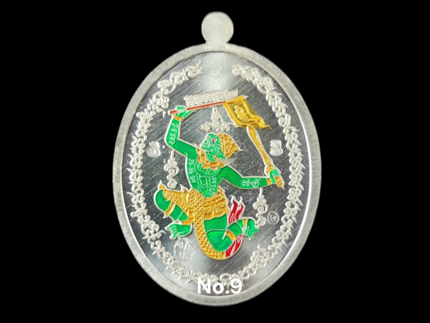 รุ่นชนะจน หลวงปู่ประเสริฐ สิริคุตโต * A2 เนื้อเงินหน้ากากทองคำเต็มแผ่น หลังหนุมานกายเขียว ธงทองคำ สร้าง 9 เหรียญ เลข9