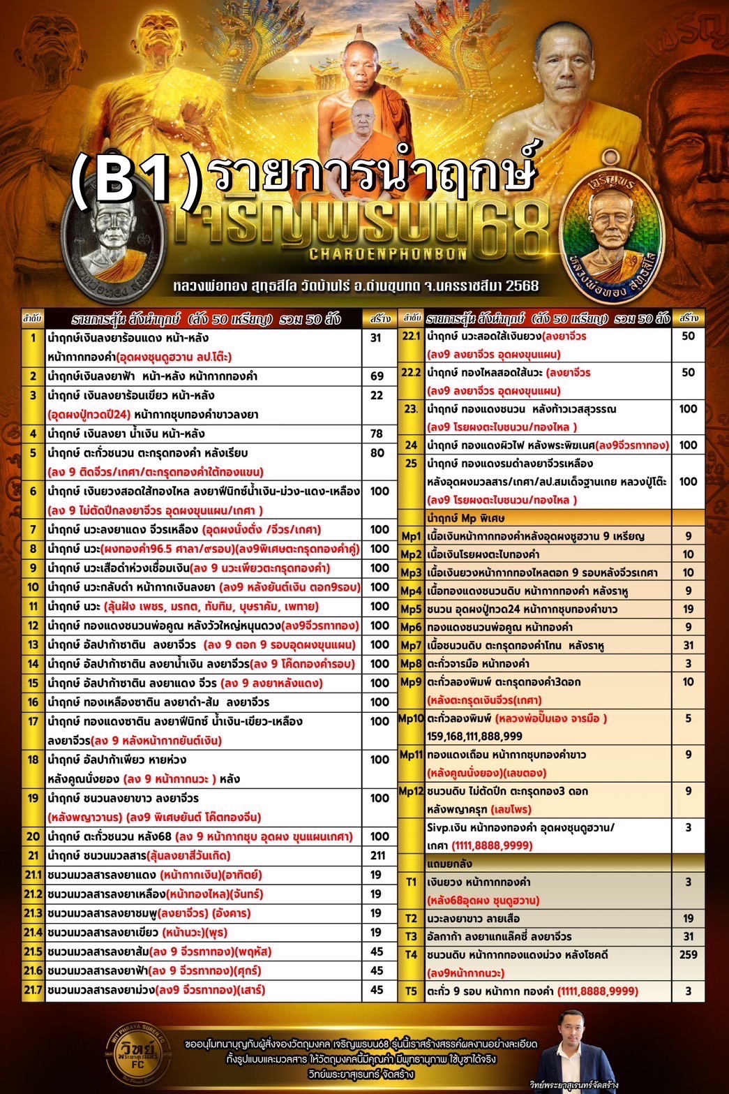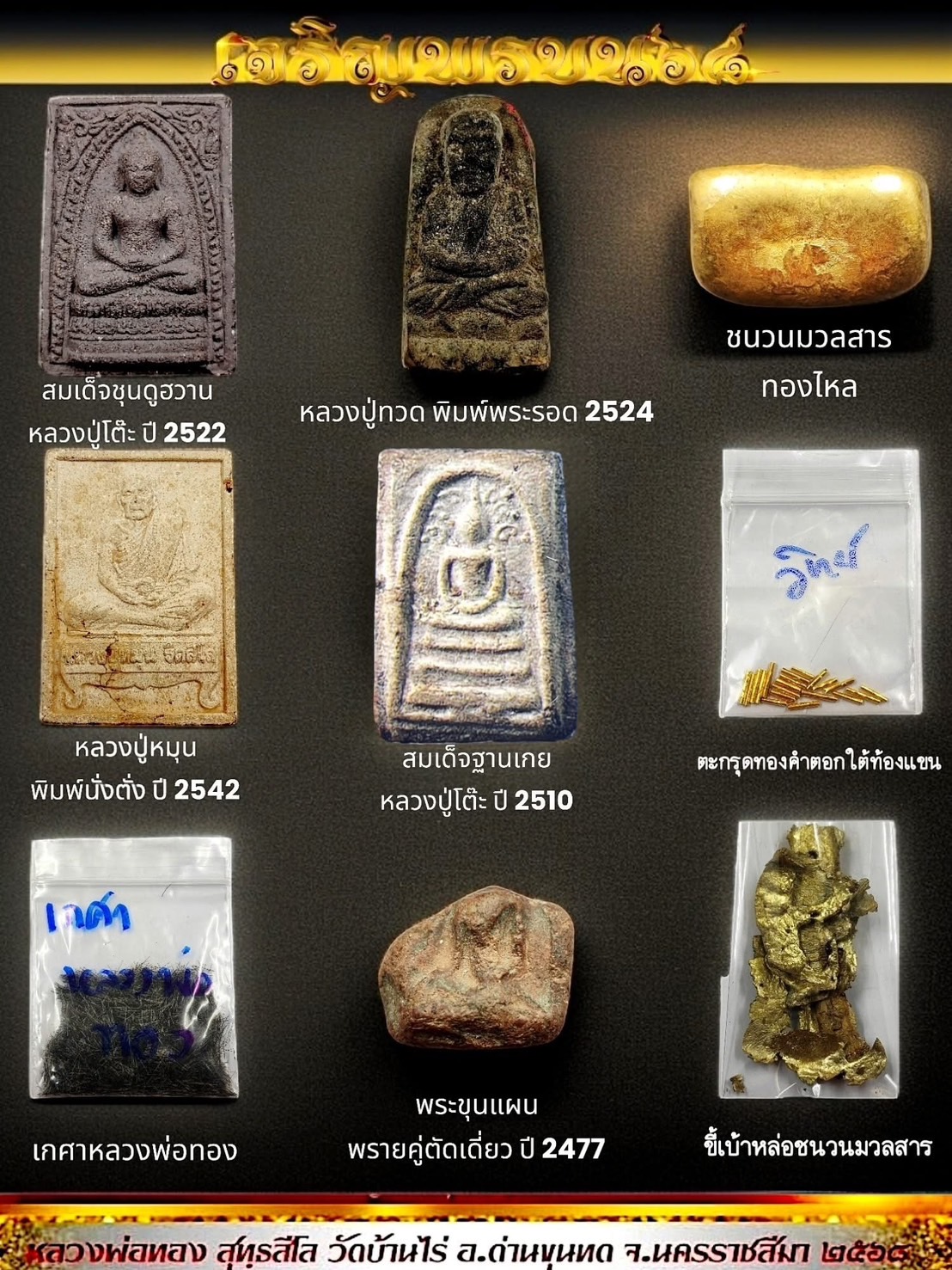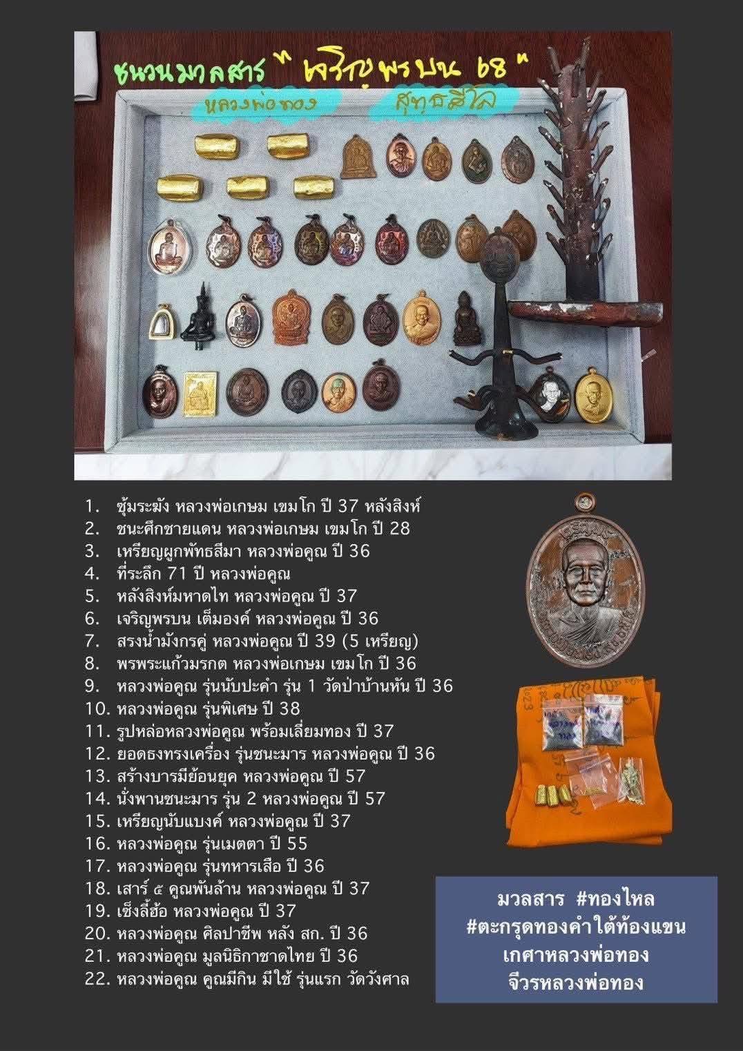 รุ่นเจริญพรบน68 หลวงพ่อทอง สุทธสีโล นำฤกษ์เงิน ลงยาร้อนแดง หน้า-หลัง หน้ากากทองคำ(อุดผงชุนดูฮวาน ลป.โต๊ะ) เลข1