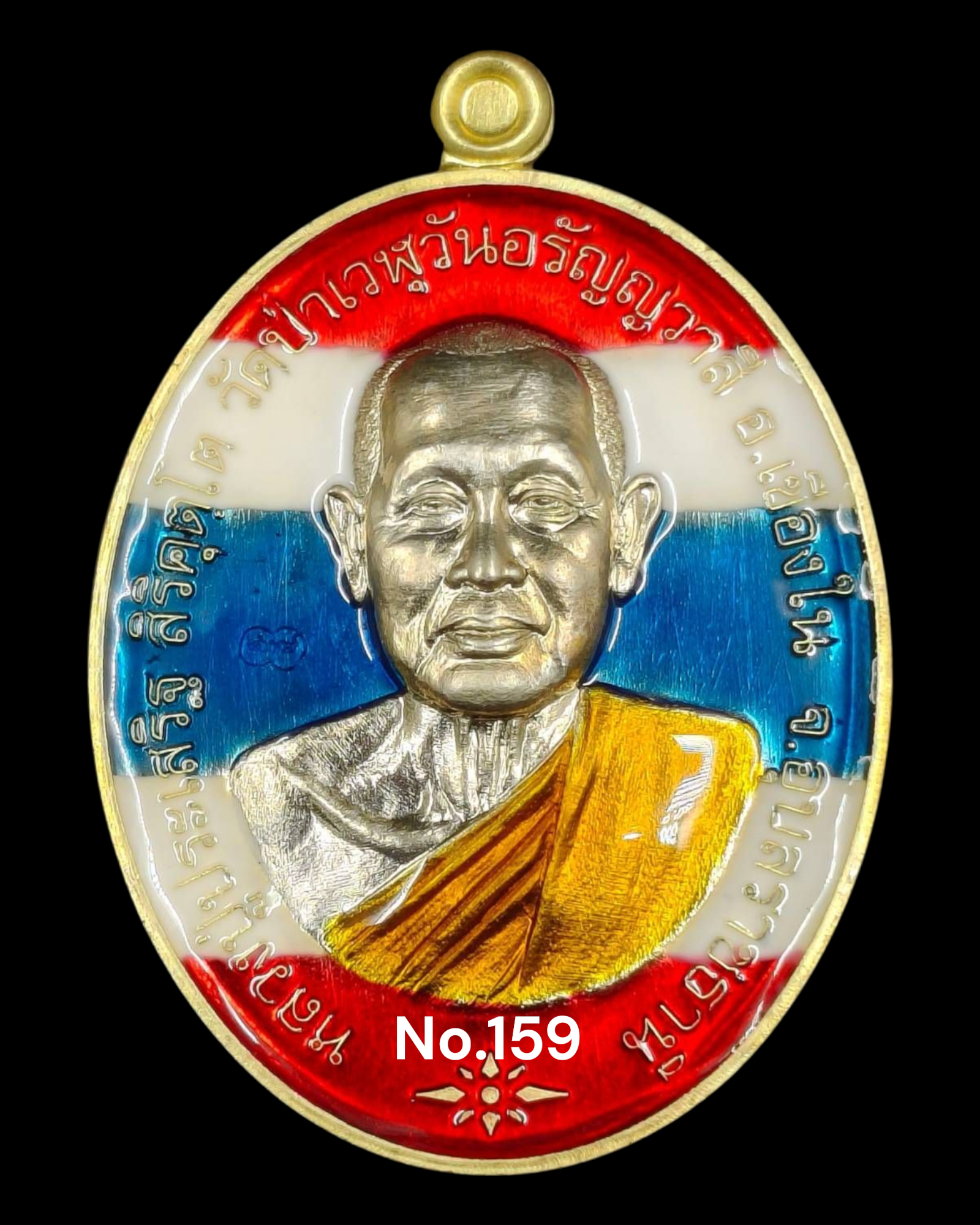 รุ่นชนะจน หลวงปู่ประเสริฐ สิริคุตโต * ทองไหลสอดใส้อัลปาก้า (ลง9ลงยาธงชาติ) สร้าง 19 เหรียญ (เลข 159)