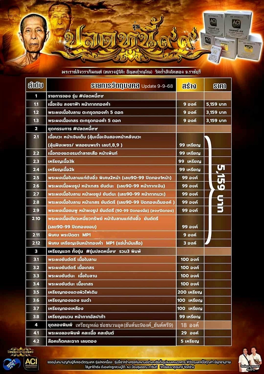 รุ่นชนะจน หลวงปู่ประเสริฐ สิริคุตโต : MPเงิน 9 รอบหน้ากากทองคำหลังครุฑสร้าง 19 เหรัยญเลข 6