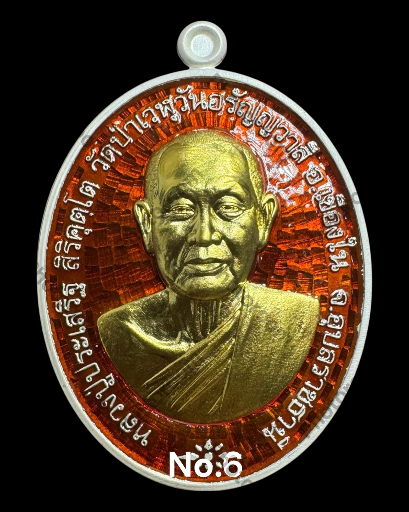 รุ่นชนะจน หลวงปู่ประเสริฐ สิริคุตโต * Mp.2 เนื้อเงินลงยาร้อนแดงหน้า พื้นหลังเขียวหน้ากากทองคำ หลังปรกลงยา สร้าง 19 เหรียญ เลข6